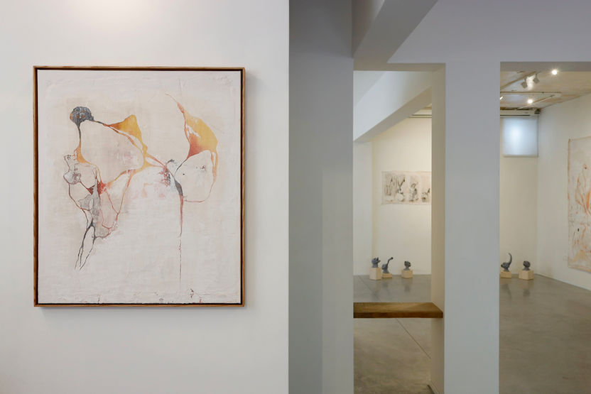 Katrin Tolkovsky's fantastical world revolves around purification and rejuvenation through processes of fragmentation and engraving. In her first solo exhibition, the artist combines diverse media (painting, video, sculpture, and sound), manifesting a remarkable synthesis of touch and expression.